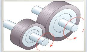 -Changing the rotary speed by using rotating elements of different sizes.
